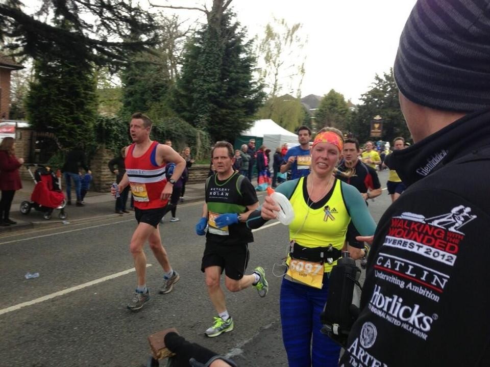Headed out through Brooklands & Altrincham, then back through Brooklands where hubby was again at mile 16 for a strategic bottle swap, and again some words of encouragement and a running hug!