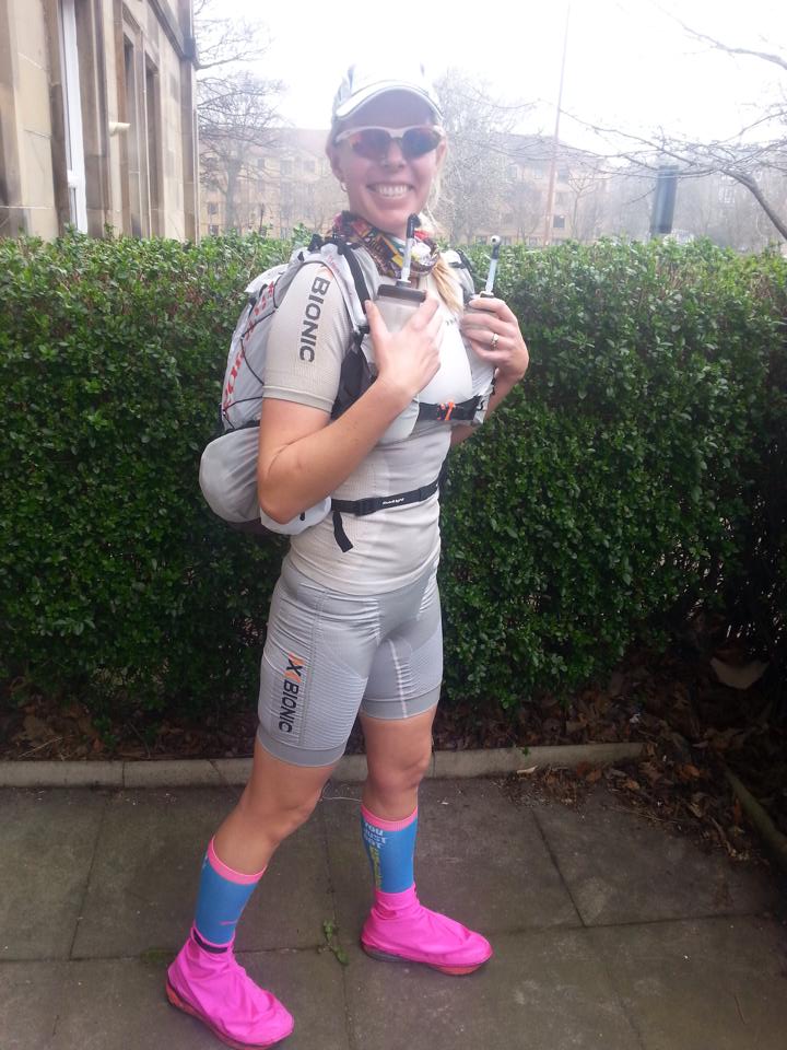 It was a bit cool at night and although I had a long sleeved skin, I ended up nabbing a long sleeve thermal top from tent mate Cheryl on day 1 when she was dumping weight from her pack, which I used every night. I had my buff which worked 4 fold; as a neck buff during the day if needed (I didn’t this time), wore it as a boob tube in the afternoon to save wearing a bra, then it was an eye mask early evening while people were messing around with torches, then finally as head cover during the night when it got cold. I also had a pair of little shorts and 3/4 compression tights for the afternoon/evenings. You could just wear your race kit all day and night but it is ‘refreshing’ to change into something else for a while. Some people take underwear and spare pairs of socks, I don’t run in underwear as that prevents chafing, and I wore the same pair of socks all week with no issues. My socks were walking themselves by the end of the week however! They looked very cute standing up all on their own two feet!