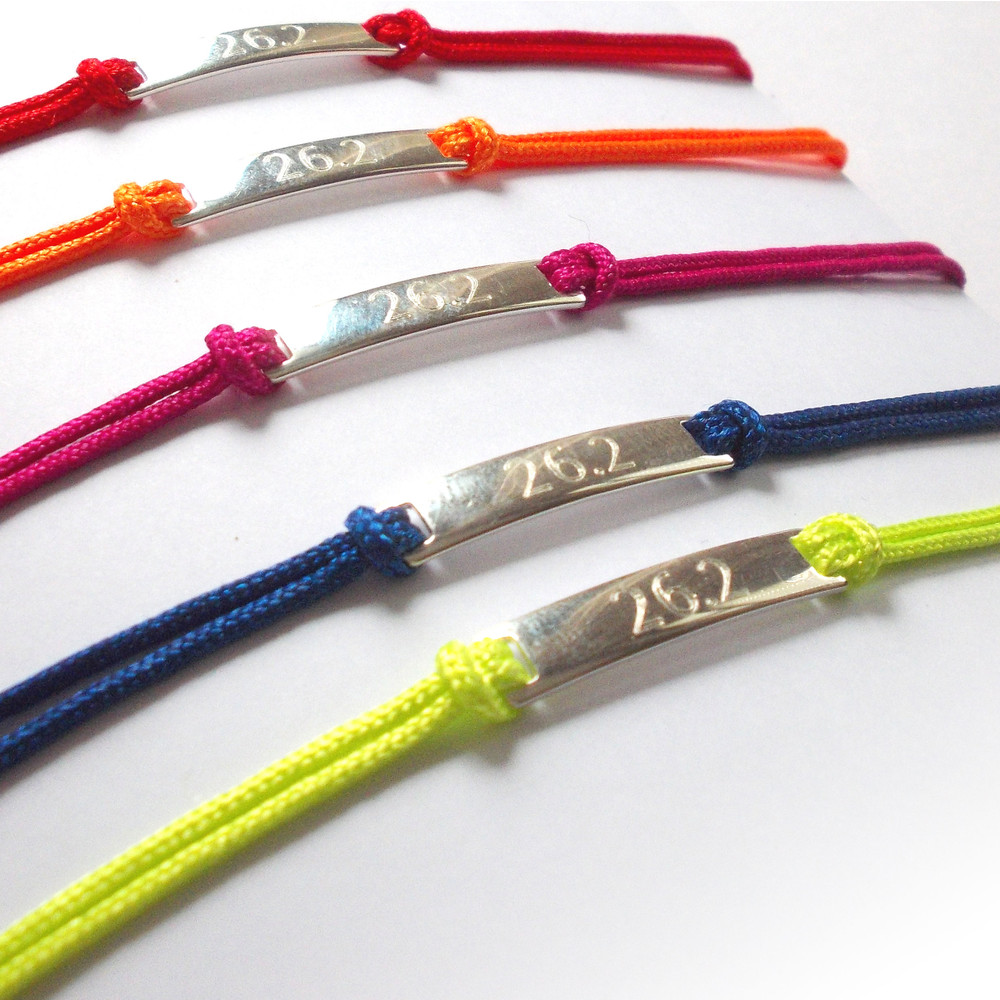 Gail makes these gorgeous engraved bracelets as a way to celebrate your running achievements. She has some for sale at Run & Become in Edinburgh that are pre-engraved for 10k,13.1 & 26.2, with an offer of free personalised engraving on the back of the metal plate.