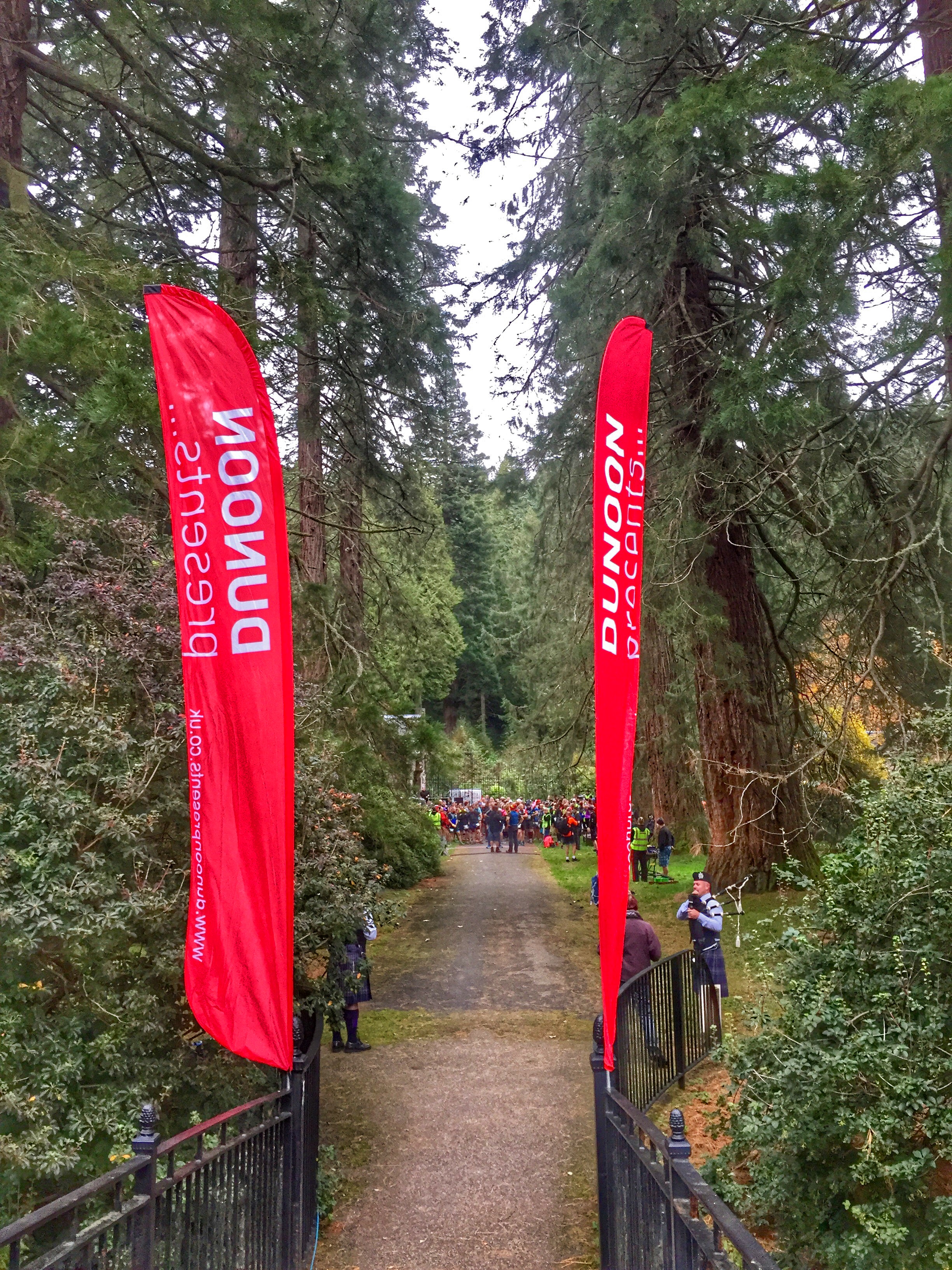 The race starts from the Benmore Botanical Gardens in amongst the magnificent giant redwood trees, which can be reached by a 15min drive from the ferry stop, though a coach transfer is provided as part of the event. The race starts at a very civilised time of 10am and is now being dubbed as the most scenic ultra in Scotland. The race kicked off to the sounds of bagpipes and canons, no countdown or fog horn to start proceedings here.