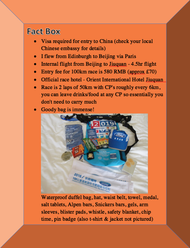 My mind & heart had finally made a full recovery after some life changes including leaving my job and adjusting to life with Dion, my husband, living away in Beijing until the new year -Read more about his incredible running journey with GOBI stray desert dog at http://www.findinggobi.com. My legs were another story. I was desperate to be running again but every time I headed out for a run my knee was causing me a lot of pain and I felt like I was running with concrete blocks for legs. Having received an invitation to run the Changan Ford Gobi 100k International Trail Race Jiuquan, China; I couldn’t pass up the opportunity, although I knew full well that it wouldn’t be easy or particularly pretty.
