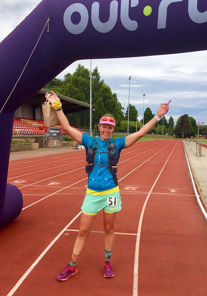 After a bus trip down from Inverness at 9:30pm to the start line, runners congregate in The Moorings Hotel before we head out to Neptunes Staircase and take our marks.  After stern warnings of ‘don’t fall in the canal’ and ‘keep the loch on your right hand side’ and we are unceremoniously on our way.  The first 7 miles are along the canal so its easy to go out too quick but I manage to control myself and stick to a steady 9min/mile pace, the weather is tempered and I’m in my WAA skort and carrier shirt, with only gloves and a buff for extra warmth.  With the Scottish summer of late I’m carrying not only a waterproof jacket but also waterproof trousers and a spare set of gloves and shirt!  I’m glad its dark as the monotony of the canal can’t yet take hold on my mind although it already begins to bore me.  I was looking forward to day breaking and being greeted by a spectacular sunrise that might have got me motivated but alas it just discreetly became bright and that was that, a new day had begun and I was 20 odd miles into the day.  The first half of the route is relatively flat, which is because of the canals.  The 2nd leg of the canal coming into CP 3 nearly finished me off, how people can run the canal races I will never know, they just never seem to finish!  I think I’d spent the first 30miles just wanting to quit but I had to push on knowing that once I got halfway then it would be worth it to keep going.