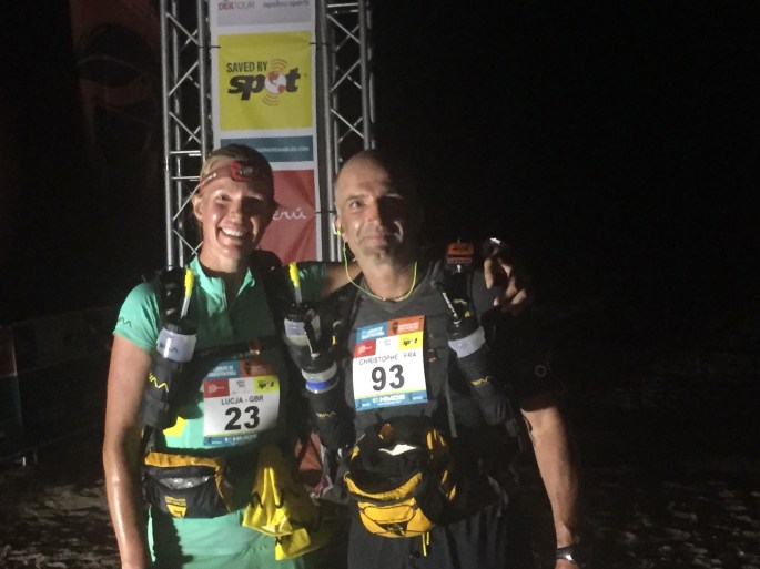 I was happy to have gotten over the highest peaks and through to CP 4 before it was dark, as the sun set the air gratefully became cooler & I could finally take on more food and found a sudden burst of energy & joining forces with French runner, Christophe, we charged through to the final CP managing to overtake quite a few runners on this stretch. Although the sun was down my body was sweating profusely and I was saturated in sweat. As is Patrick’s specialty the long stage final stretch seems to be never ending with relentless sand and diversions down to the beach before having to climb back up and while seeing the finish line complete a massive loop around before finally reaching it to test your mental strength. I got in just under 11hrs for the day which was exactly as I’d predicted based on day 1 time, spot on!